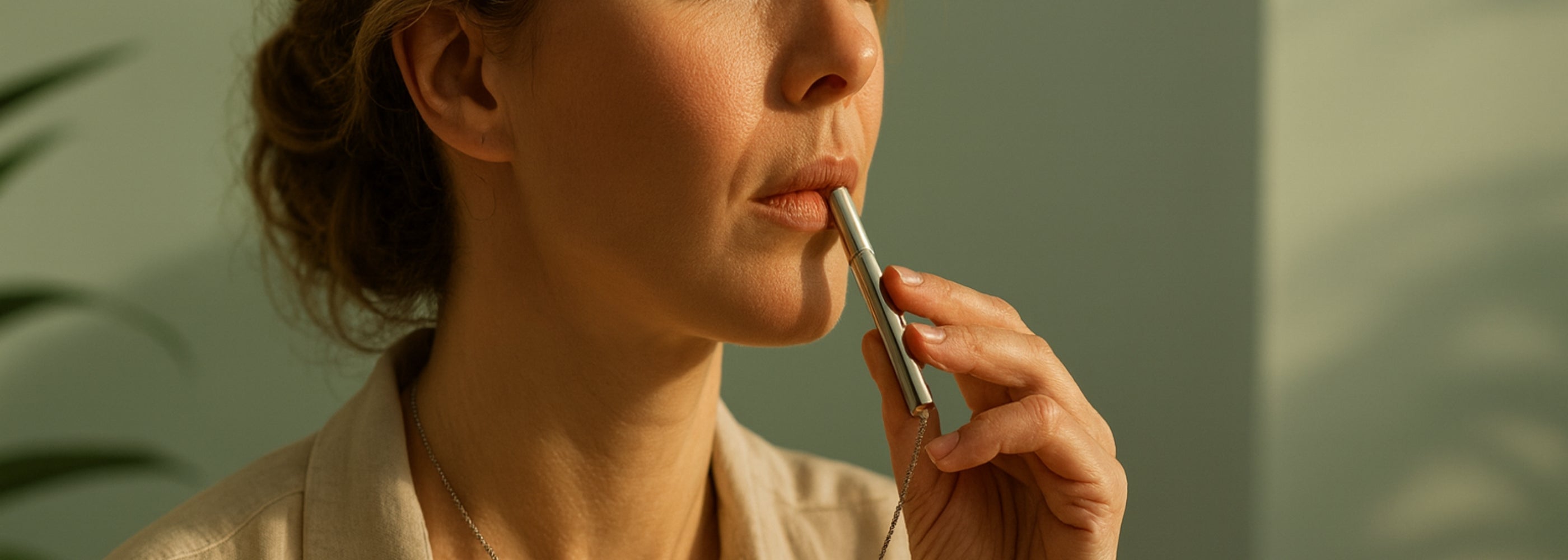 Assolutamente! Puoi usarlo ovunque e in qualsiasi momento — al lavoro, a casa, in auto o durante una pausa. Il suo formato discreto ti permette di portarlo al collo e di accedervi facilmente non appena senti una voglia o un momento di stress. Basta un semplice respiro per ritrovare la calma, senza nicotina, senza svapo, solo respiro.