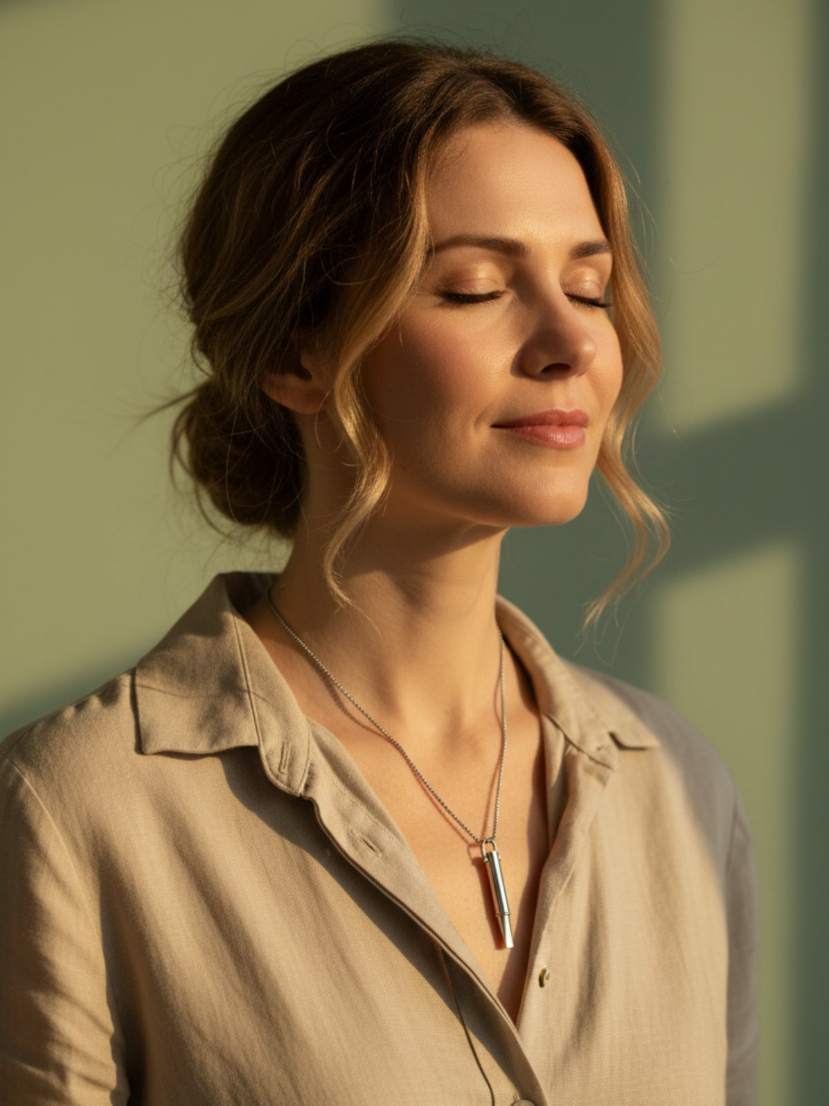 Assolutamente! Puoi usarlo ovunque e in qualsiasi momento — al lavoro, a casa, in auto o durante una pausa. Il suo formato discreto ti permette di portarlo al collo e di accedervi facilmente non appena senti una voglia o un momento di stress. Basta un semplice respiro per ritrovare la calma, senza nicotina, senza svapo, solo respiro.